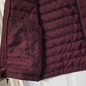 Quilted design for warmth. Ideal for layering. Stylish maroon color.