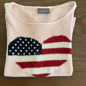 Chic and cozy sweater with a bold heart design. Features American flag motif. Perfect for casual outings.