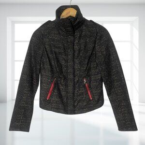 Elevate your casual style with this rugged and chic jacket from the popular We The Free line by Free People. This essential layering piece is a Size 2. The jacket is designed with a high neckline that zips up to cover the neck for extra warmth and features a secure zipper and snap closure for superior wind protection. Function meets fashion with two front pockets, perfect for storing essentials on the go.