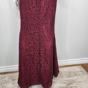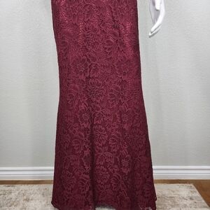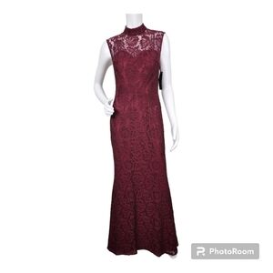 NWT Betsy & Adam Mock Open-Back Burgandy Lace Gown Size 10