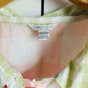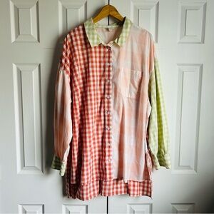 Cato high low gingham patchwork maximalist long sleeve button down shirt