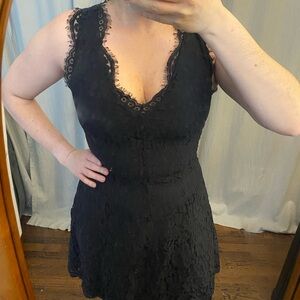 Joie- all over black floral lace sleeveless mini dress. Lined. Side zip. A-line mini, perfect for parties or would be a great graduation dress. Size medium. Caviar black.
