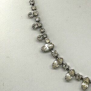This timeless Weiss rhinestone necklace showcases sparkling marquise and round stones, perfect for elevating formal ensembles. Its vintage charm embodies classic elegance.