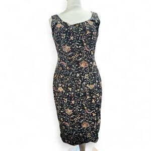 Chic black midi dress with colorful floral design. Sleeveless and stylish. Perfect for versatile wear. 92%pima cotton. Does have some stretch to it. Worn a handful of times.