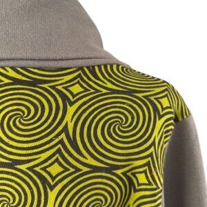 Features a prominent lime green/yellow spiral pattern on one side and a colorful embroidered "tree of life" or abstract tree design on the other.