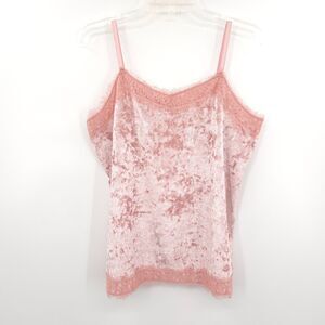 No Boundries Y2K cruched velvet lace trim tank top Size L pink stretch