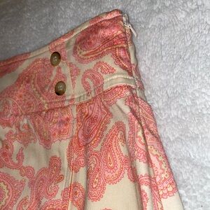 Evan Picone Coral and Yellow Paisley Print A-Line Skirt