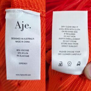 Tags: aje dress, orange midi dress, raffia fringe, ribbed knit dress, statement dress, resort wear, vacation style, designer occasion, bold fashion, modern chic