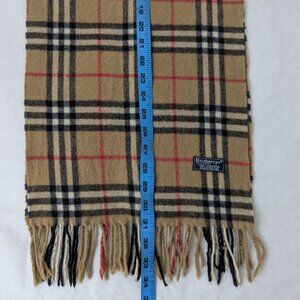 This vintage pre-owned Burberry scarf is in good condition with no tears, holes, or stains. The scarf is 100% authentic. Please review photos to assess signs of age and ensure the item meets your expectations before purchase.