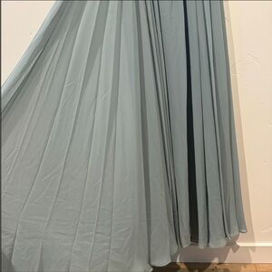 NWT $995 Sachin & Babi Jolie One Shoulder Sequin Gown Steel Blue #J1442. The silver sequin bodice is met by a banded waist and fully pleated skirt of layered chiffon. *Please note: The top of the dress is sequin based. I did not notice any missing, however I cannot guarantee that a few might fall off during the shipping process. The items is stored in an individual bag so if anything falls off, you would be able to reattach.