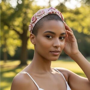 All beads have been sewn on to the fabric to create a 3D look to the designed fabric. This will also create longevity for your headband.