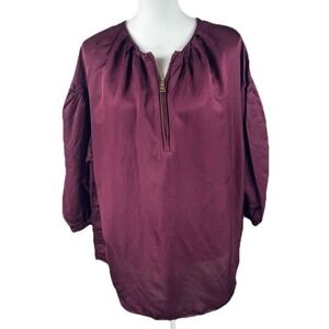 Keywords: Talbots, tunic, floral, pink, cotton, v-neck, ruffle collar, long sleeve, casual, bohemian, feminine, lightweight, blouse