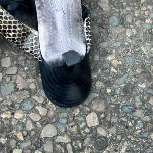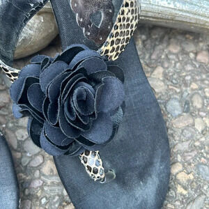 Beverly Feldman Snakeskin Black Rose Floral Thong Heeled Sandals Size 7