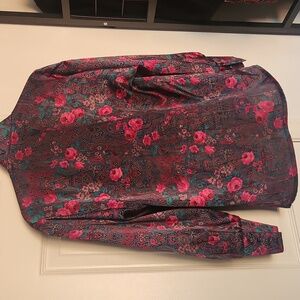 Jaeger Pink Silky Floral Button Down Blouse Medium