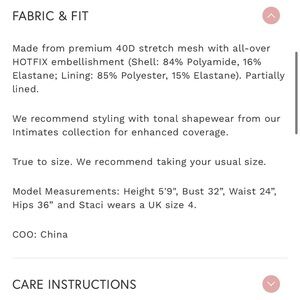 • Fabric: Polyester / elastane blend with crystal embellishments