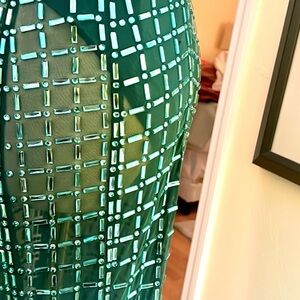 Embellished S Gown in Emerald Green that Shimmer in this stunning green sequin gown, perfect for any special occasion. The elegant design and sparkling sequins make it a standout piece. #fashion, #Step into the spotlight in this striking Oh Polly “Marleni” Heavily Gem-Embellished Gown — a body-skimming showpiece crafted in shimmering emerald stretch mesh with mirrored square crystal detailing throughout.