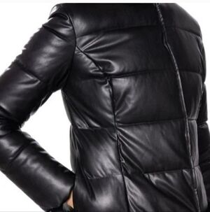 Chic black puffer with plush faux fur details. Perfect for cold weather.
