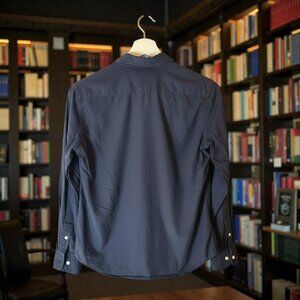 Channel your inner Ivy League aesthetic with this classic Lauren by Ralph Lauren button-down. Crafted from 100% cotton in a deep navy blue, this shirt features a stunning embroidered gold and red crest on the chest pocket area that adds a touch of "Old Money" luxury.