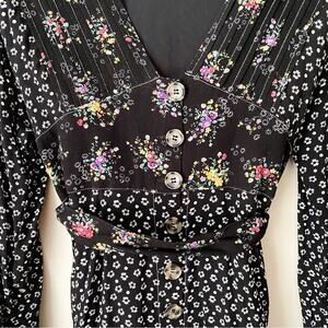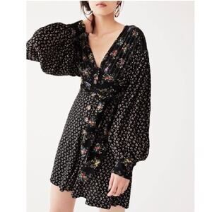 Free People | Wonderland Mini Dress Floral Waist Tie Fit Flare Boho Black Small
