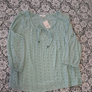NWT New Directions XL Light Minty Green Eyelet Cotton Blend Blouse With Eyelets