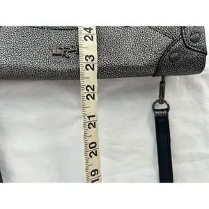 Keywords: Coach bag, crossbody, pewter, metallic, leather, studded, turnlock