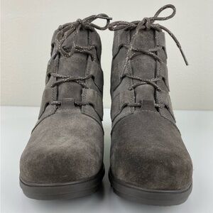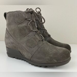 Sorel Women's 9 Evie Lace Major Boot Grey Suede Wedge Heel Weatherproof Gorpcore