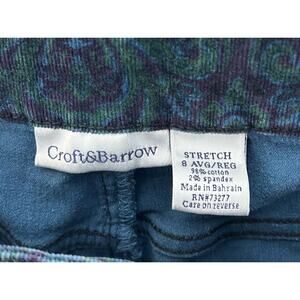 Croft & Barrow Paisley Print Corduroy Jeans Womens Size 8 Stretch Pockets