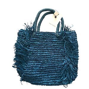 HOME HOLIDAY Straw Handle Tote Bag Blue NWT