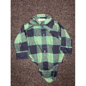 Outdoor Kids Baby Boys Girls Green Navy Plaid Long Sleeve Bodysuit 6 9 Months