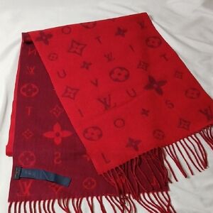 Chic Louis Vuitton scarf with iconic monogram. Features black, white, and tan accents.
