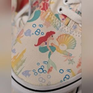 Rare and highly sought-after Disney collaboration featuring Ariel from The Little Mermaid. These Vans Authentics are brand new and never worn. Discontinued style and hard to find, especially in this condition.
