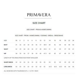 Sizing tips: Every designer cuts their dresses differently & according to their size chart. Please measure yourself (in inches) before ordering & follow our size chart (pictured under the main dress picture). If you are in between sizes or unsure of the fit, choose a size up, as it is easier for your seamstress to take in rather than out. Please refer to the size chart in our images section.