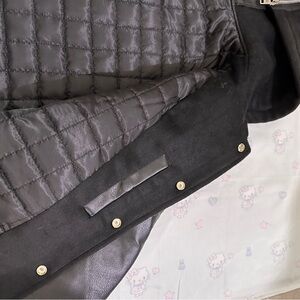 Material: The wool part is mostly a wool blend, and the leather is sheepskin/cowhide, soft to the touch yet with a crisp feel.