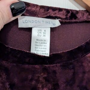 London Times Crushed Velvet Long Sleeve Dress in Deep Burgundy Women's Size 6
