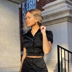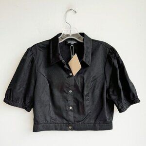 NWT KITTENISH | Black Satin Cropped Blouse | Multiple Sizes
