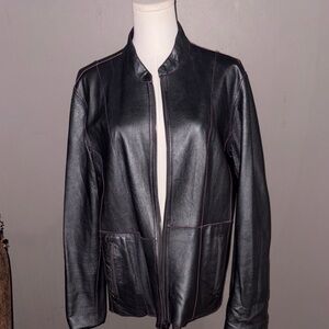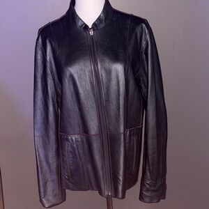 Step out in style with this elegant purple leather jacket. Its sleek design and rich color make it a must-have "True reversible construction with leather on both sides — a hallmark of high-end leather craftsmanship." Measurements shoulders18/ pro 21/ length 25