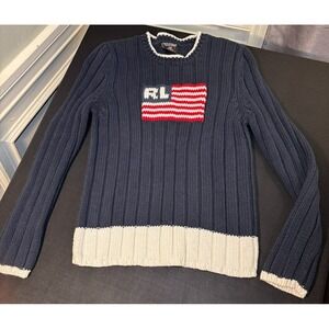 Polo Ralph Lauren RL American Flag Cable Knit Sweater #67437 Women's L VTG