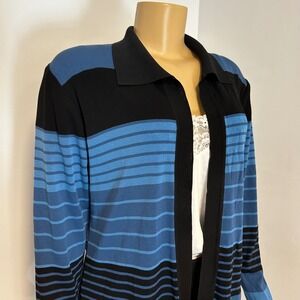 Misook Striped Knit Cardigan Sweater Blue Black Long Sleeve Collar Medium