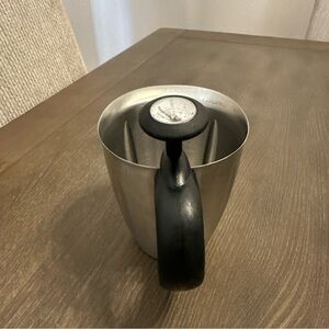Starbucks Coffee Milk Frothing 16oz Steel Creamer Steam Pitcher Cup Temp Gauge. Has some scratches on it. See photos.