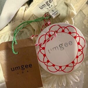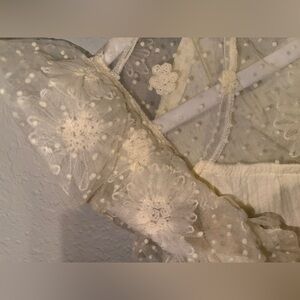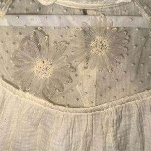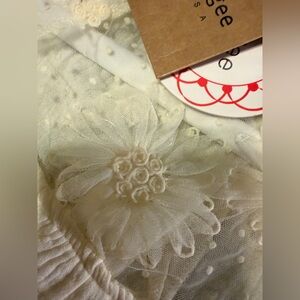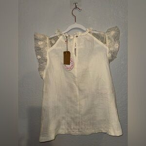 Elegant NWT Umgee cream linen like blouse with sheer ruffle sleeves and beautiful flower application . Perfect for a chic look. Size small NWT