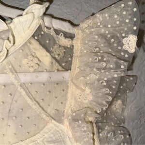 NWT Beautiful Cream Sheer lacing linen feel Ruffle Blouse