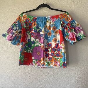 H&M Floral Off the Shoulder Top Blouse Women’s 2 Puff Sleeve 70s Vintage Vibes