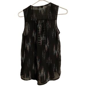 Meadow Rue tank top size S with tassels, round neck, black with multicolor detail.