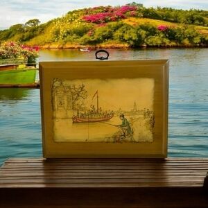 Discover a rare vintage treasure with this MARCY LAWSON Decoupage Wood Frame, showcasing a picturesque #FishermanVillage. This unique piece of #HomeDecor is a true collectible, perfect for those who appreciate handmade artistry. Measuring approximately 9” x 1” x 7”, it’s designed to fit seamlessly on any wall, adding charm to your space.