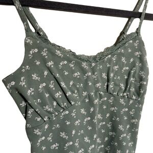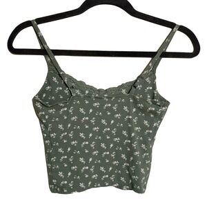 Hollister Green Floral Y2K Lace Trim Milkmaid Babydoll Coquette Cami Tank Small