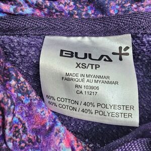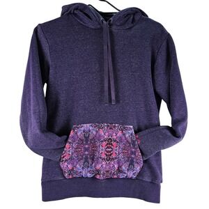 Keywords: Bula, Purple Hoodie, Womens Hoodie, Activewear, Pullover, Sweatshirt, Floral Hood, Pocket, XS, TP, Cotton Blend, Casual, Athletic, Hooded Sweatshirt