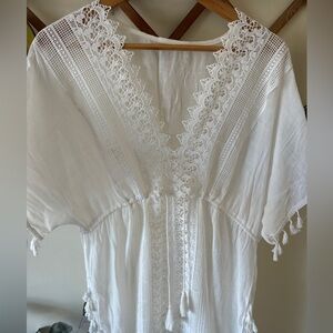 BoHo white cover-up with delicate lace accents.