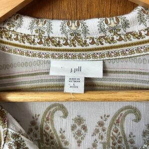 Keywords: J Jill Petite, Paisley, Tunic Shirt, Bohemian, Casual, Long Sleeve, Button Down, Lightweight, Resort Wear, Vacation, Print, Petite Fit, Olive Green, White