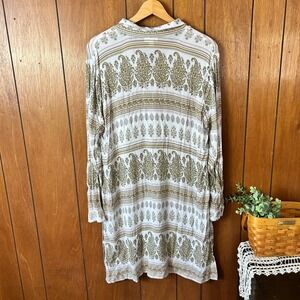 J Jill Petite Long Sleeve Paisley Print Tunic Shirt Dress White Olive Green L
