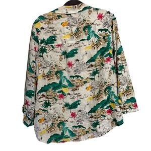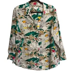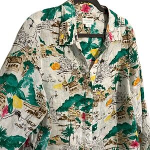 Cynthia Rowley Linen Amalfi Coast Vacation Print Button Down Shirt Blouse 1X